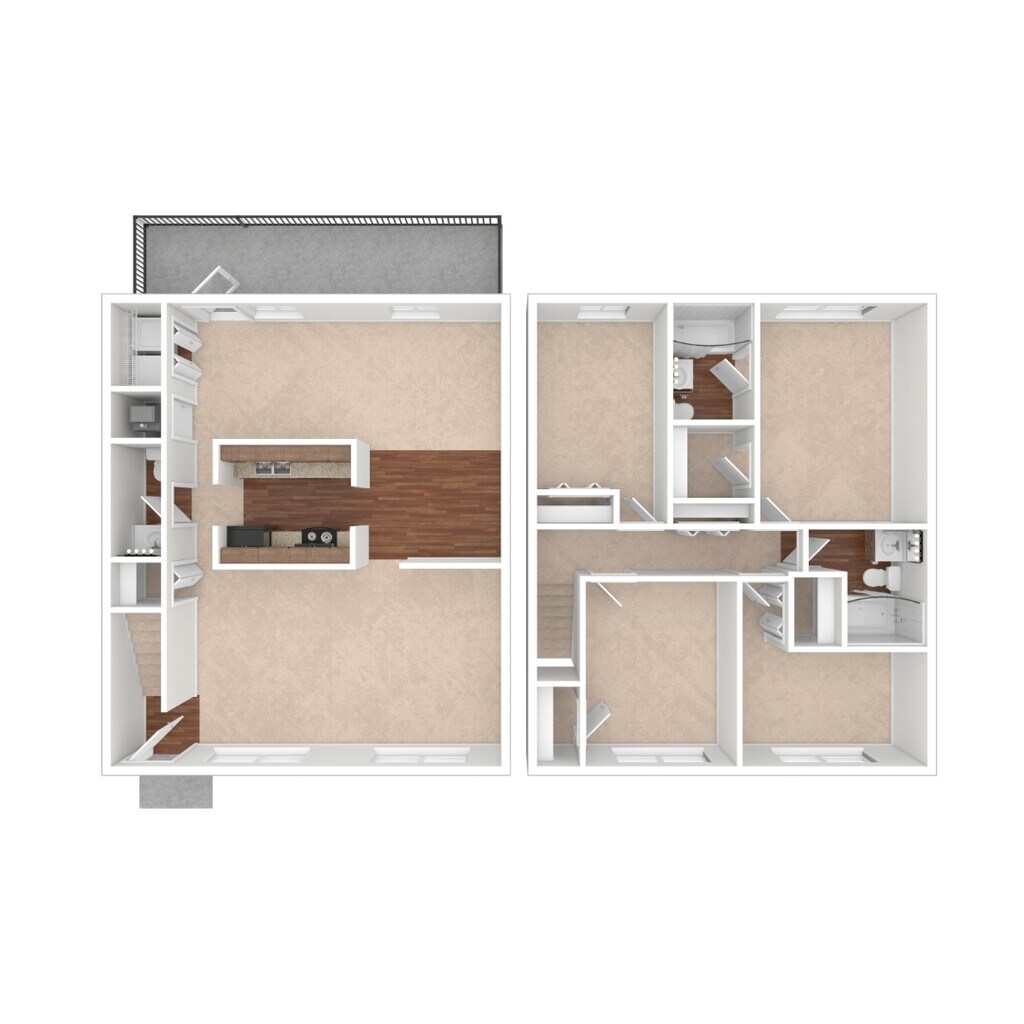 3 Bedroom Townhome - Floorplan 3 4 Bedrooms