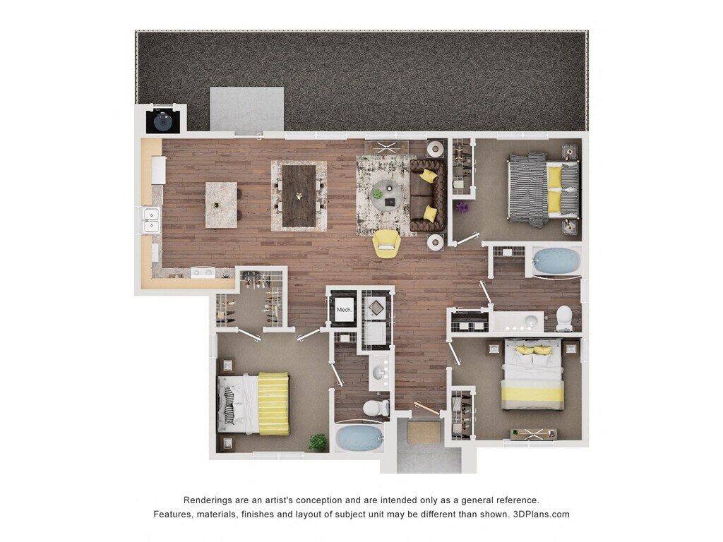 Apartment Model: 3AFrom $1,7613 Bedroom, 2 Bath, 1243 sq ftAvailable August 8, 2026![]()