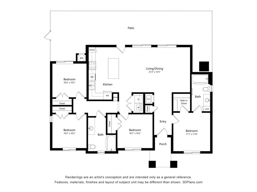 Apartment Model: 3AA (Wheelchair Accessible)From $1,5223 Bedroom, 2 Bath, 1161 sq ftAvailable August 8, 2026![]()