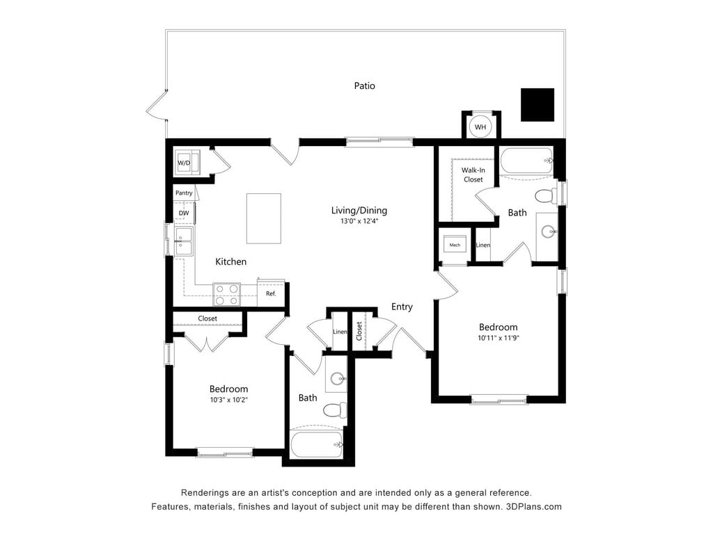 Apartment Model: 2AA (Wheelchair Accessible)From $1,5222 Bedroom, 2 Bath, 1205 sq ftAvailable September 12, 2026![]()