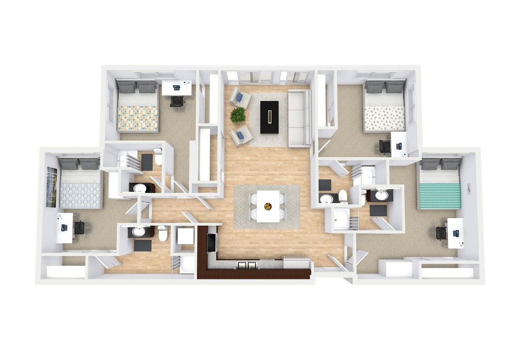Apartment Model: 4x4$1,9494 Bedroom, 4 Bath, 1200 sq ftAvailable Now![]() - 4x4 - Floorplan 1 Apartment Unit: PrivateApartment Model: 4x4$1,9494 Bedroom, 4 Bath, sq ftAvailable Now
