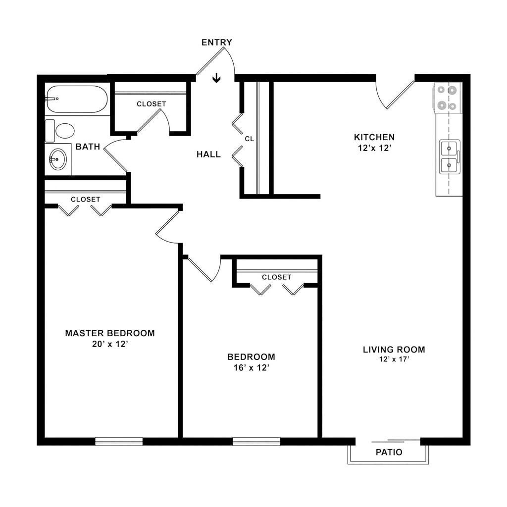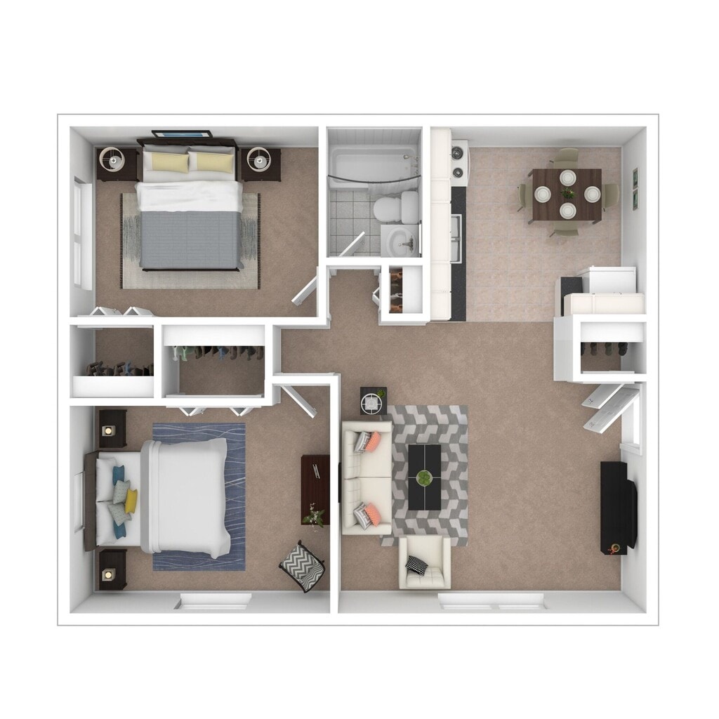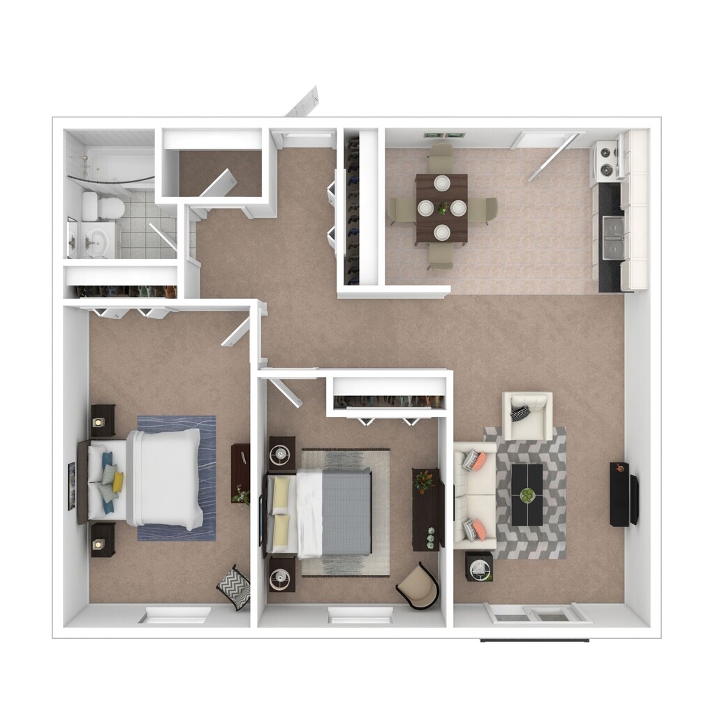 2 Beds, 1 Bath, 750 sq ftAvailable NowModel Gallery
