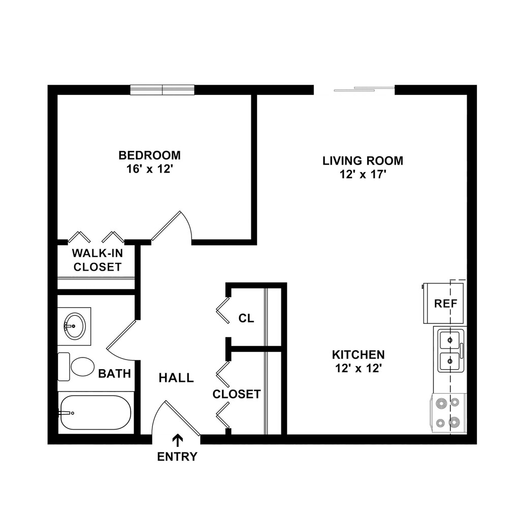 1 Bedroom - Floorplan 3 2 Bedrooms