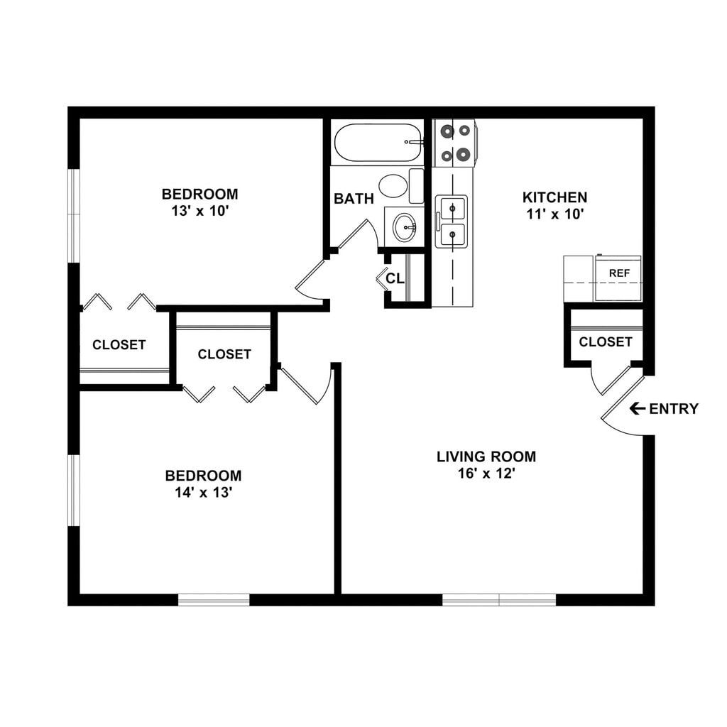 2 Beds, 1 Bath, 950 sq ftAvailable NowModel Gallery