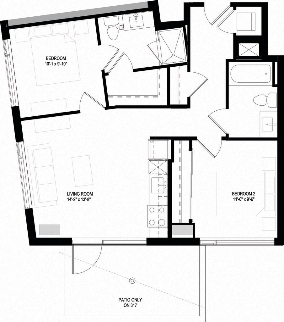One Bedrooms/One Bathrooms (J03) - Floorplan 1 ![]()
