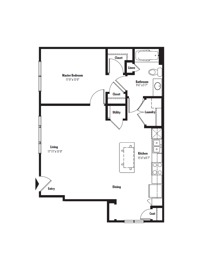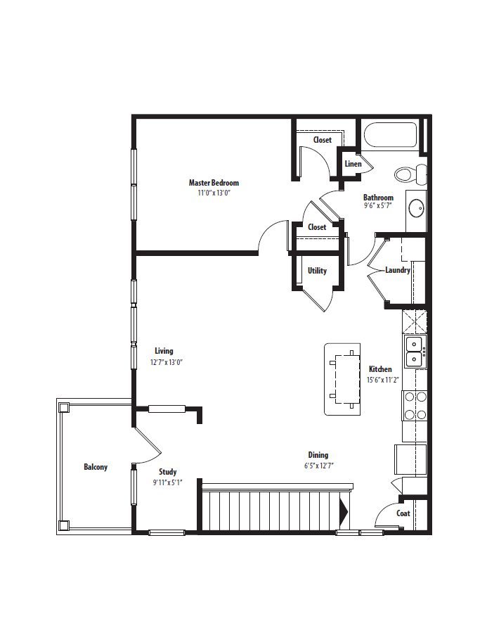S1 - Floorplan 1 Apartment Unit: 0110Apartment Model: S1$1,161Studio, 1 Bath, 525 sq ftAvailable January 17, 20261 Bedroom