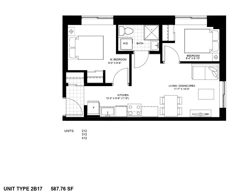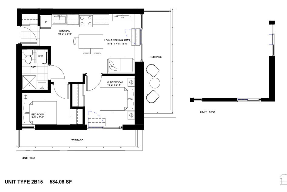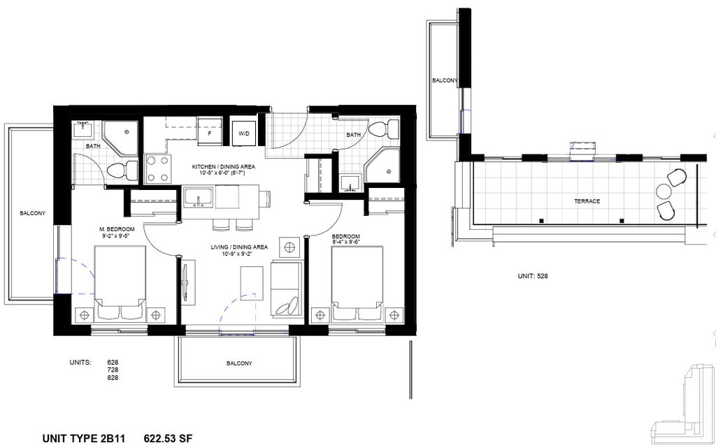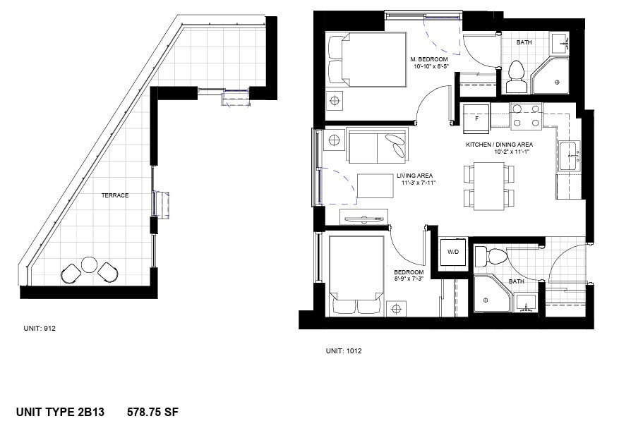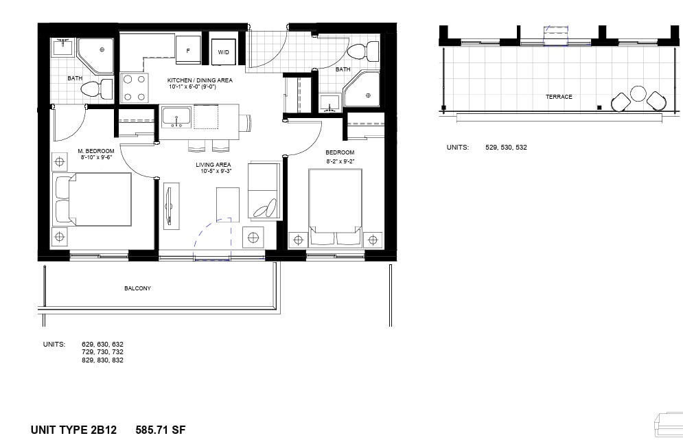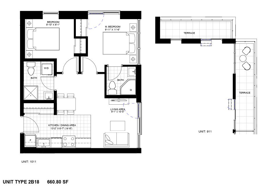 1 Bed 1 Bath - Floorplan 10 2 Bedrooms