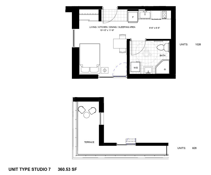 Studio, 1 Bath, 260-353 sq ftAvailable NowModel Gallery