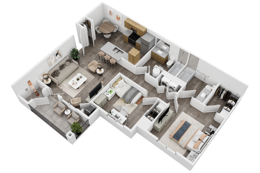Apartment Model: The Juniper B - 2x2From $1,5502 Bedroom, 2 Bath, 1065 sq ftAvailable Now![]()