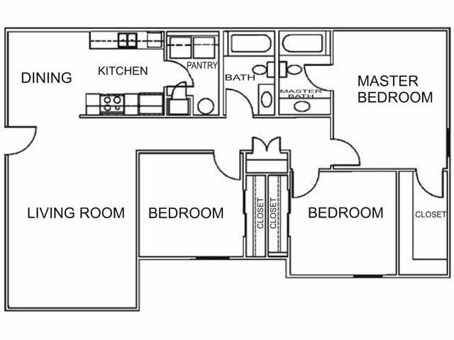 Apartment Model: 3X2 1222-1300$1,1003 Bedroom, 2 Bath, 1222-1300 sq ftUnavailable![]()