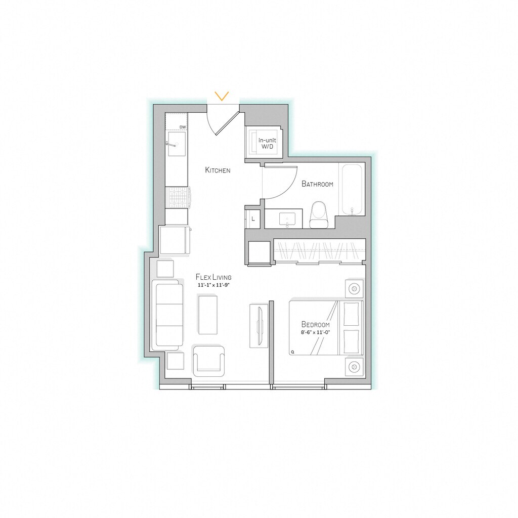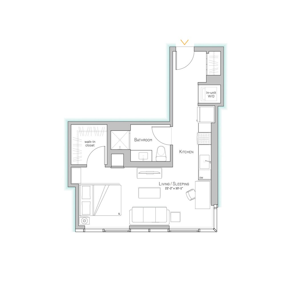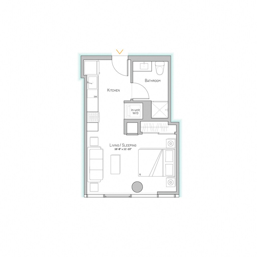 X10 Convertible - Floorplan 1 Apartment Unit: 1510Apartment Model: X10 Convertible1 Bedroom, 1 Bath, 480 sq ftAvailable Now![]()