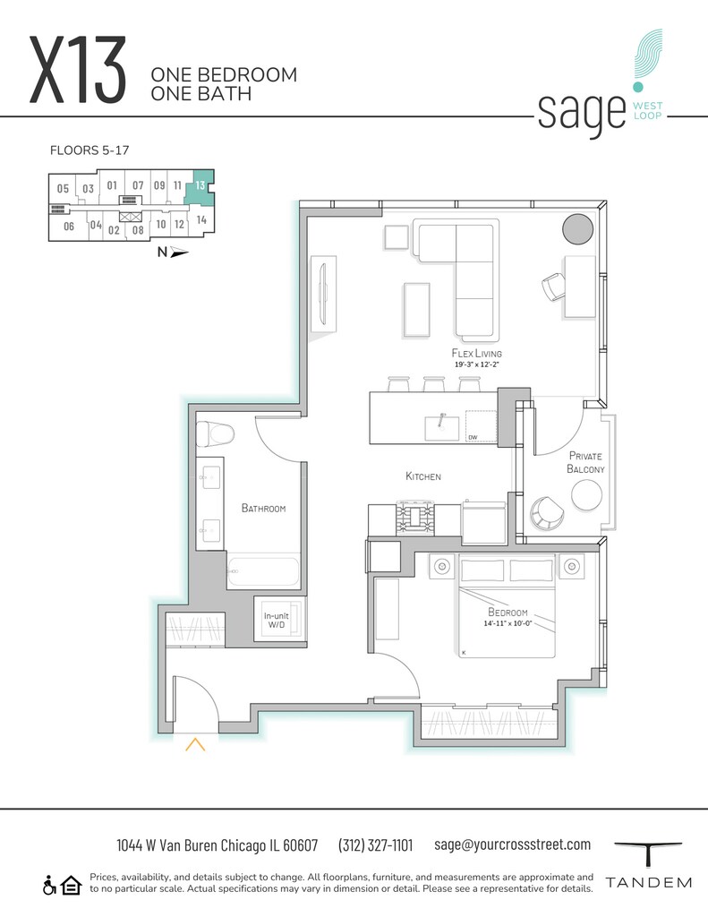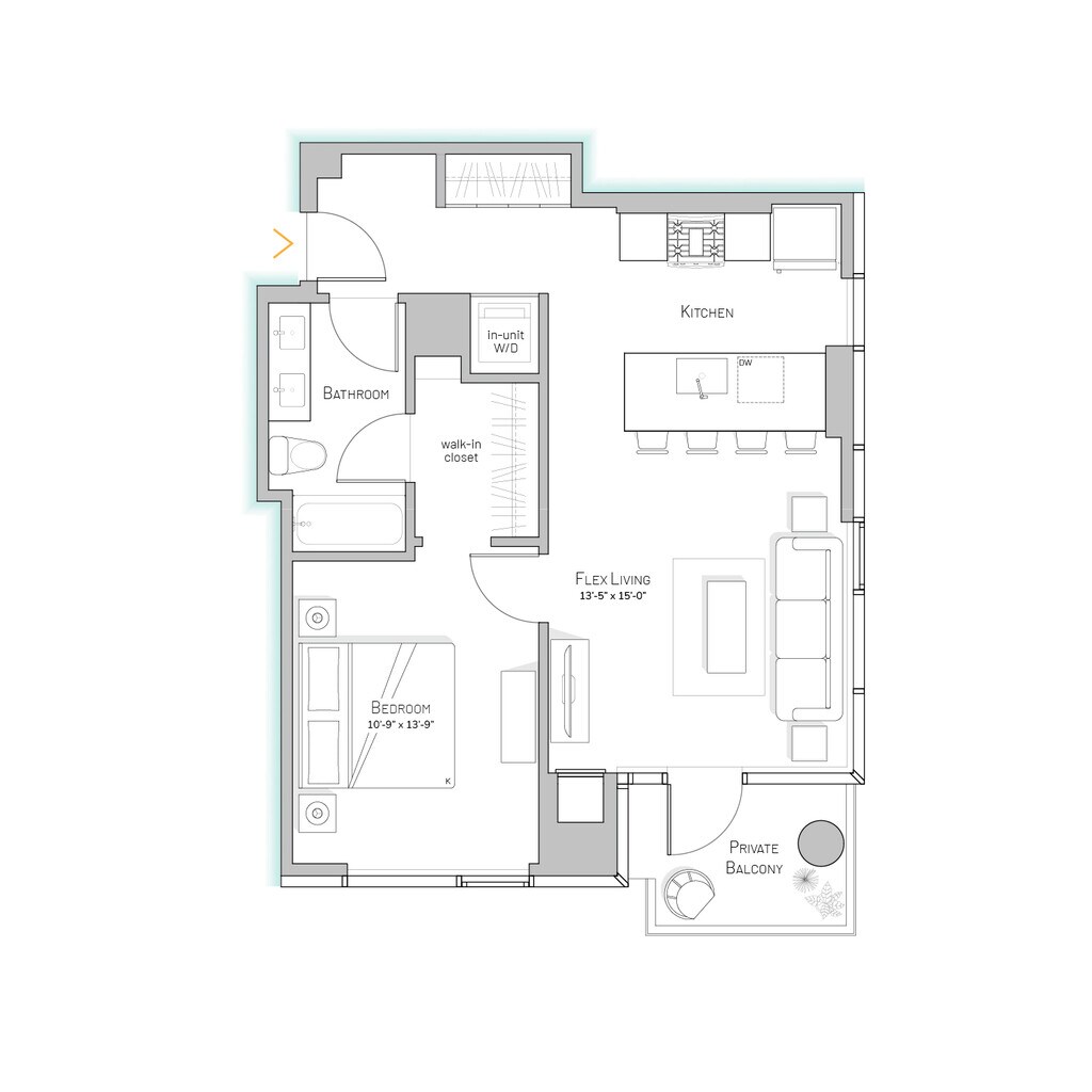 X14 - Floorplan 1 Apartment Unit: 1514Apartment Model: X141 Bedroom, 1 Bath, 751 sq ftAvailable Now![]()