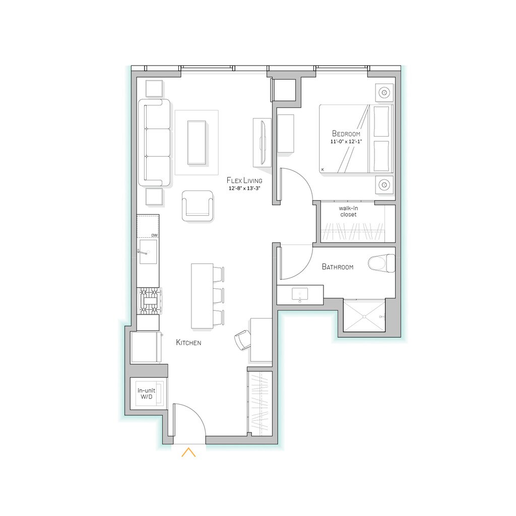 X03 - Floorplan 1 Apartment Unit: 403Apartment Model: X031 Bedroom, 1 Bath, 666 sq ftAvailable Now![]()