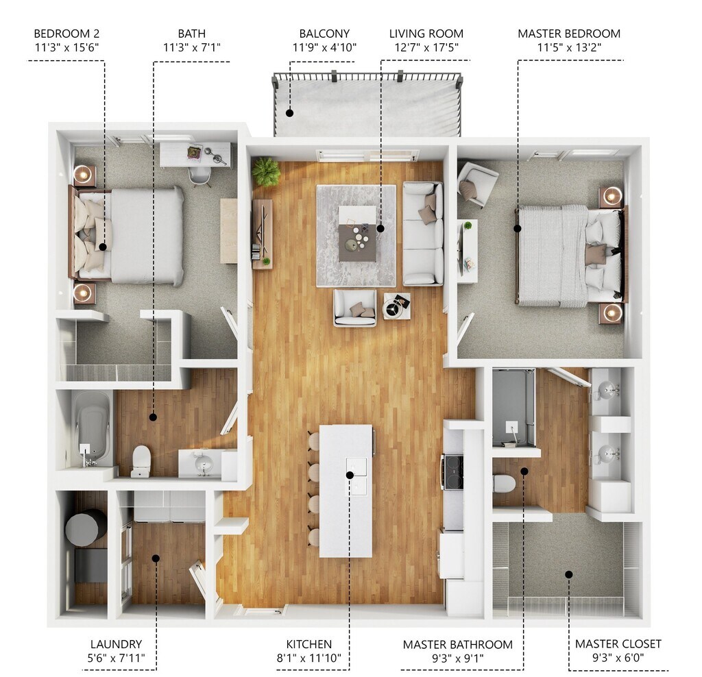 Apartment Model: B3From $1,7452 Bedroom, 2 Bath, 1018 sq ftAvailable March 16, 2026Floor plans are artist's rendering. All dimensions are approximate. Actual product and specifications may vary in dimension or detail. Not all features are available in every rental home. Please see a representative for details.
