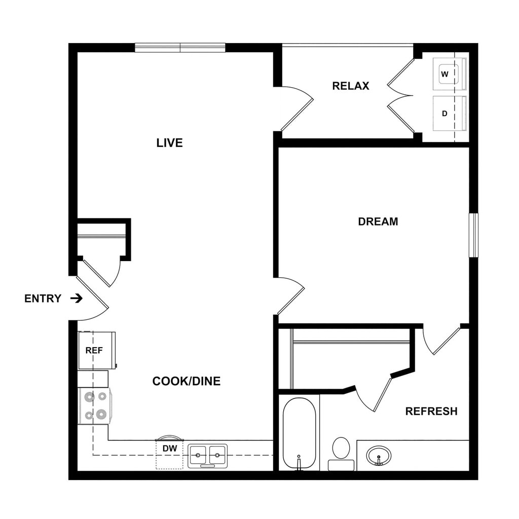 Apartment Model: A1From $8401 Bedroom, 1 Bath, 587 sq ftAvailable NowFloorplansPhotos![]()