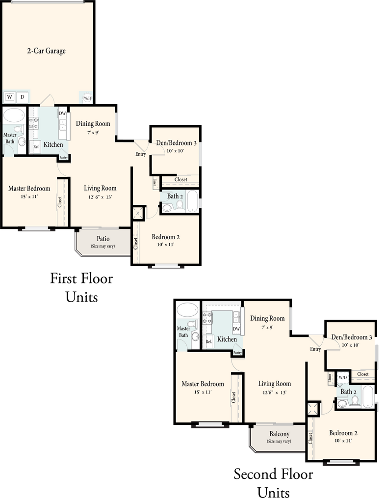 Apartment Model: The FairfieldCall For Rates3 Bedroom, 2.5 Bath, 1354 sq ftUnavailable![]()