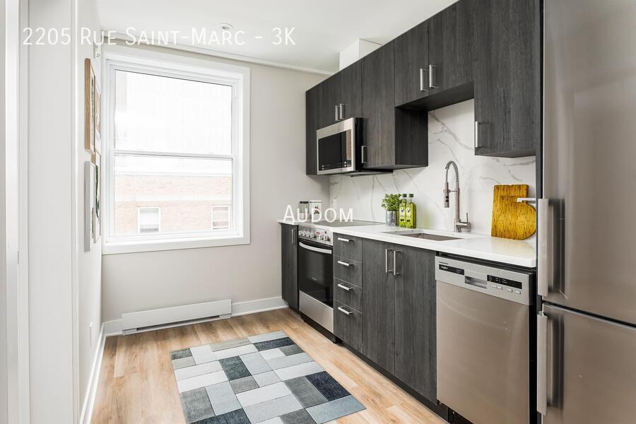 Found in the heart of the Shaughnessy Village neighbourhood, 2205 Saint-Marc is nestled between Downtown Montreal, Concordia University campus and Westmount. Conveniently close to restaurants, cafes, bars, shops, grocery stores, public transit, and so much more. The newly renovated building was upgraded to a sleek modern interior design style with high-end finishings. Every space is well insulated and operates at high level of energy efficiency, bringing you low utility costs. Air exchangers help to provide the apartments with comfortable and clean filtered air.