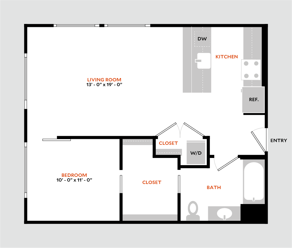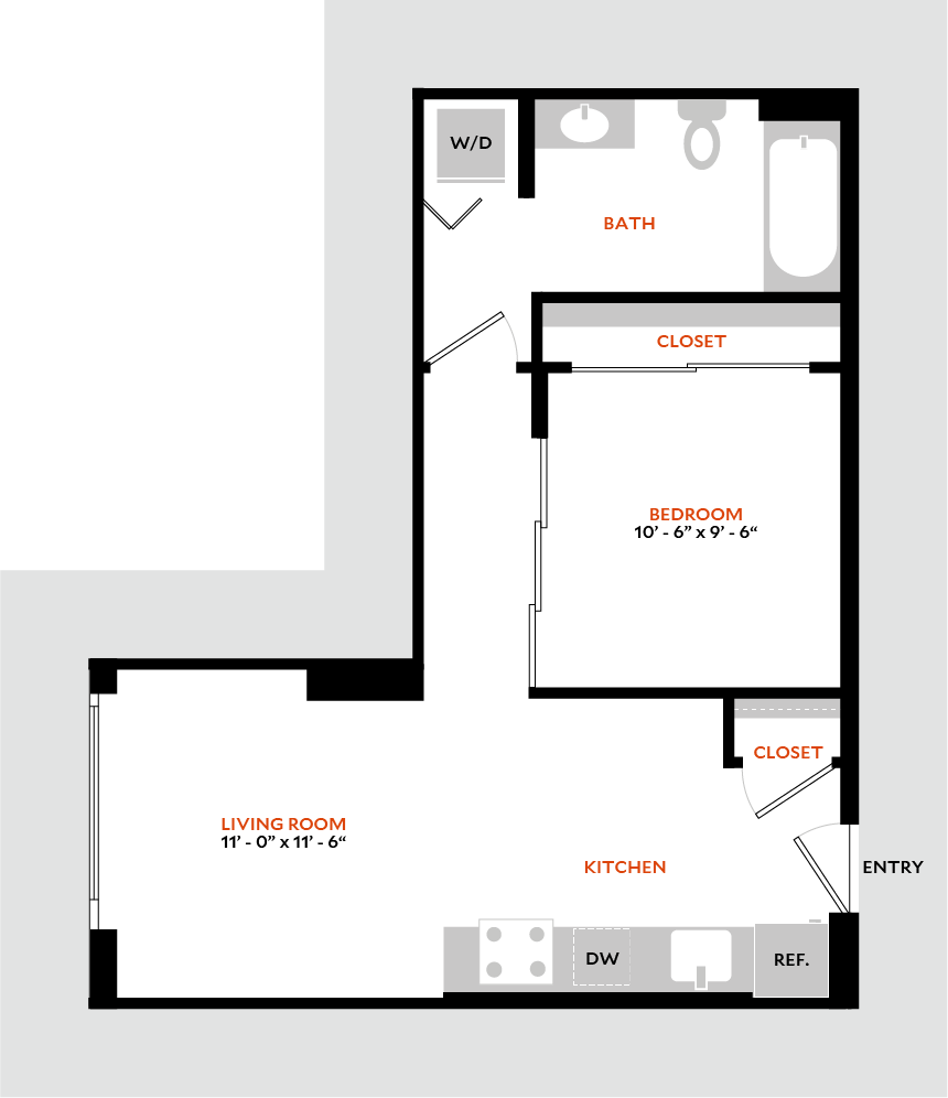 Studio, 1 Bath, 528 sq ftModel Gallery