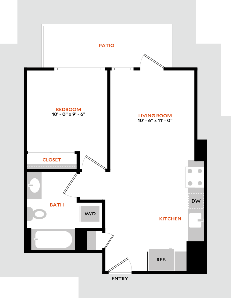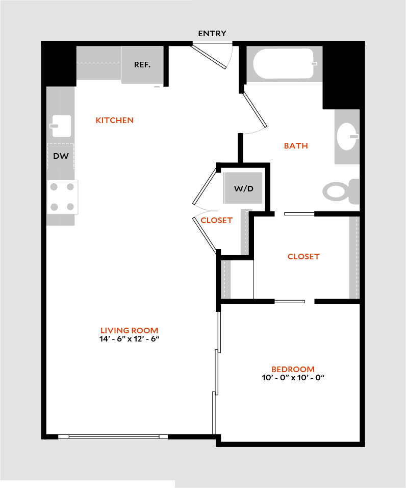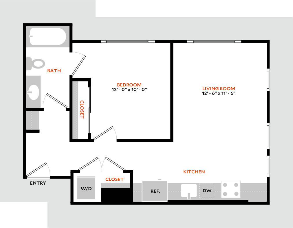 Studio, 1 Bath, 537 sq ftAvailable NowModel Gallery