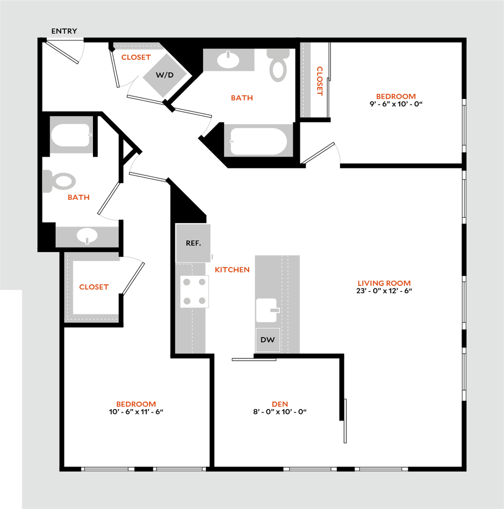 1 Bed, 1 Bath, 675 sq ftAvailable NowModel Gallery