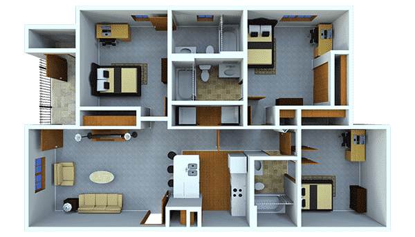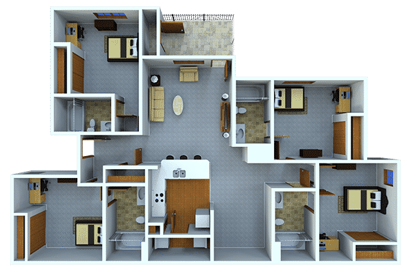 3x3s - Floorplan 1 Apartment Unit: PrivateApartment Model: 3x3s$6393 Bedroom, 3 Bath, 347-361 sq ftAvailable August 12, 20264 Bedrooms