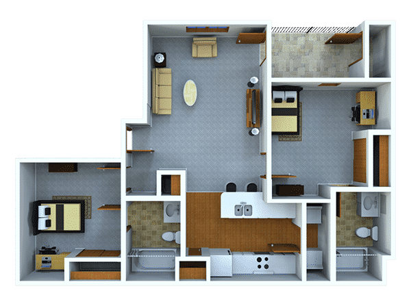 Apartment Model: 3x3s$6393 Bedroom, 3 Bath, 1040 sq ftAvailable August 12, 2026![]()