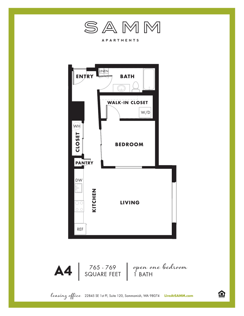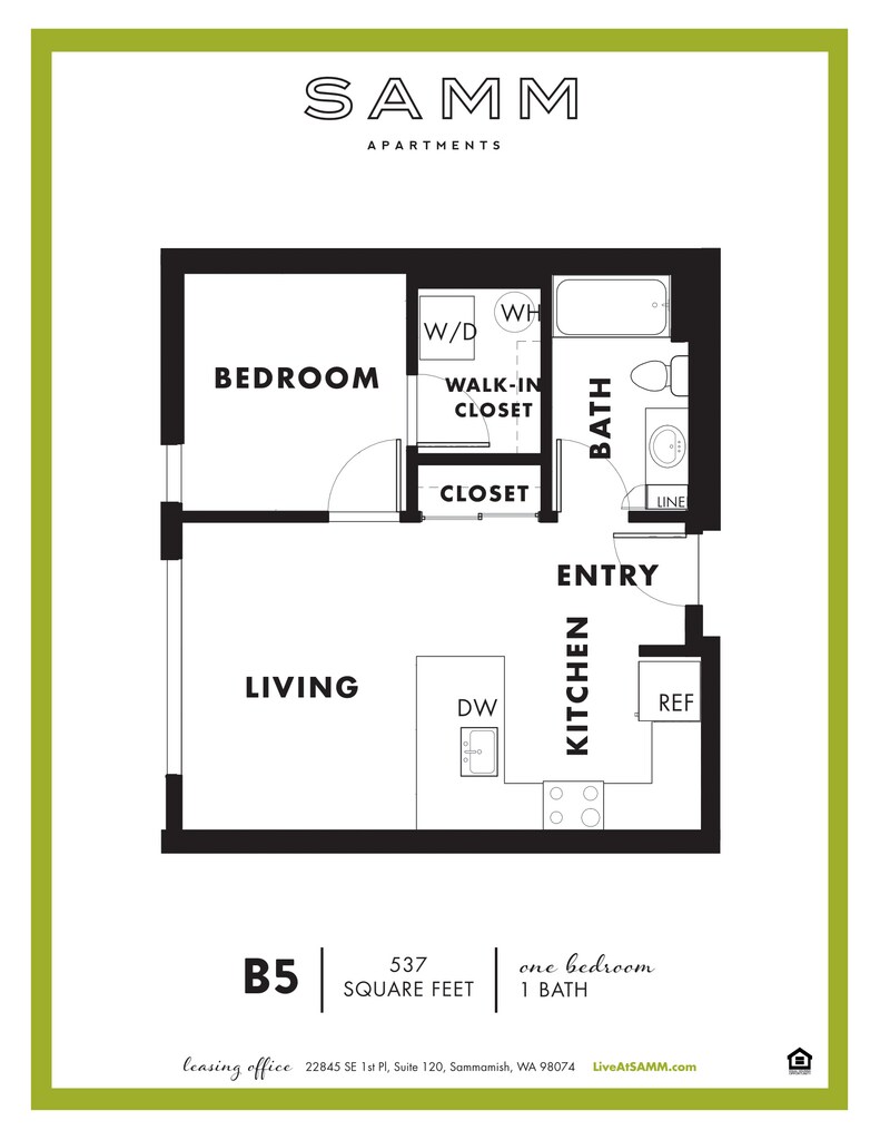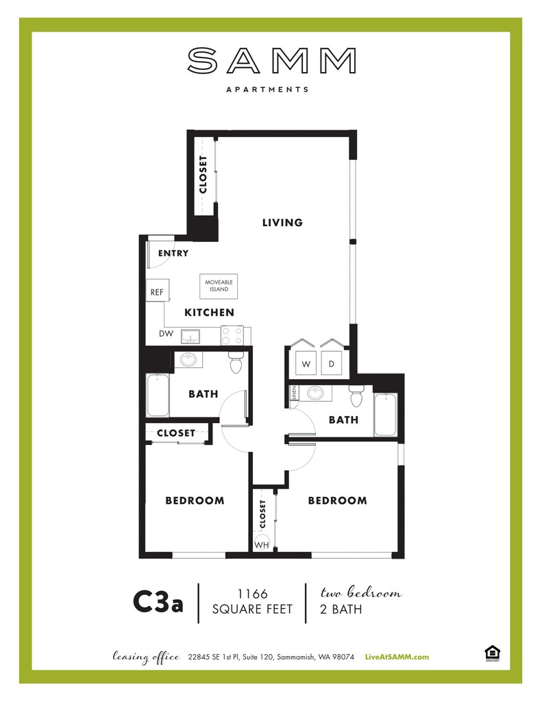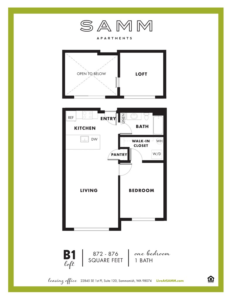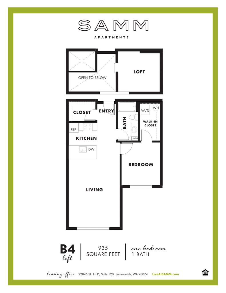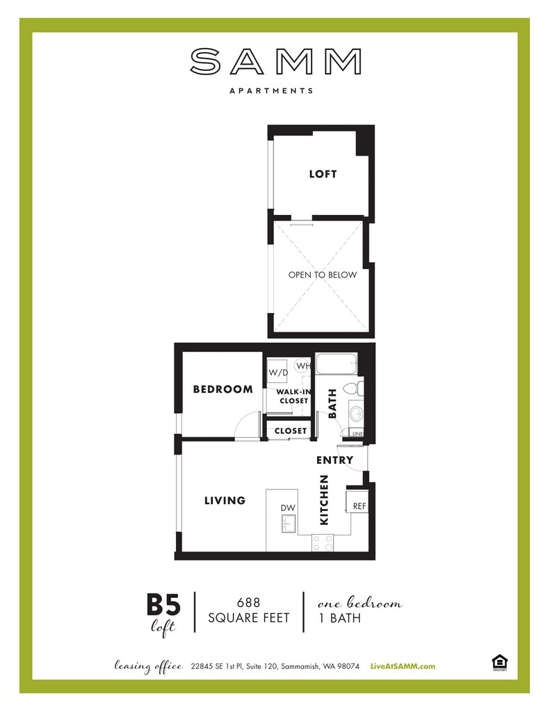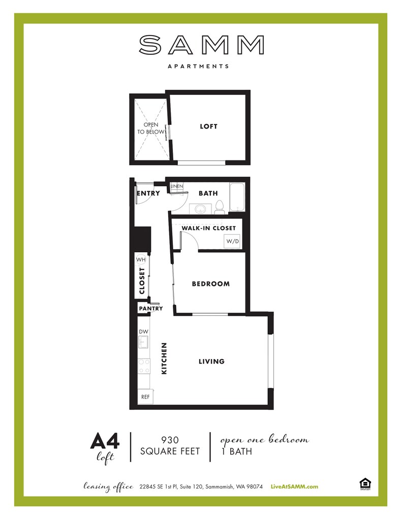 Welcome to SAMM Apartments, where residents can truly live! We offer brand-new, spacious studio, one, and two-bedroom apartment homes, located across the street from The Village at the Sammamish Town Center! Inside youll find luxurious features like open floor plans, quartz countertops, spacious closets, dens, lofts and so much more. Residents can work or lounge in the large amenity areas, play a game of ping pong on the patio with friends, get active in the fitness center, or take in the sunset on the rooftop deck around the fireplace. Find the home that fits your lifestyle at SAMM.