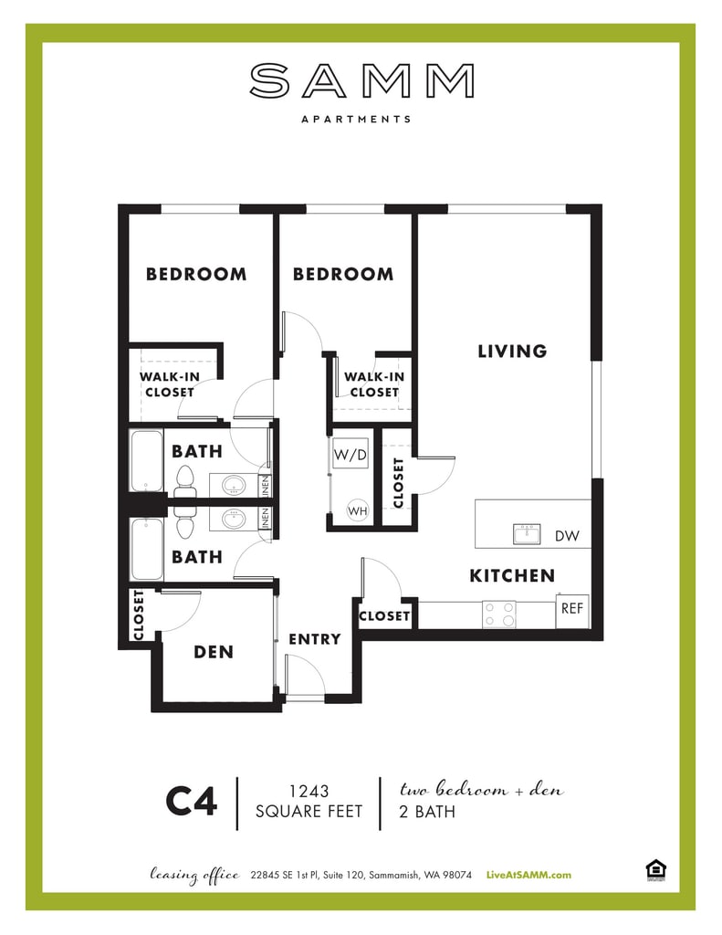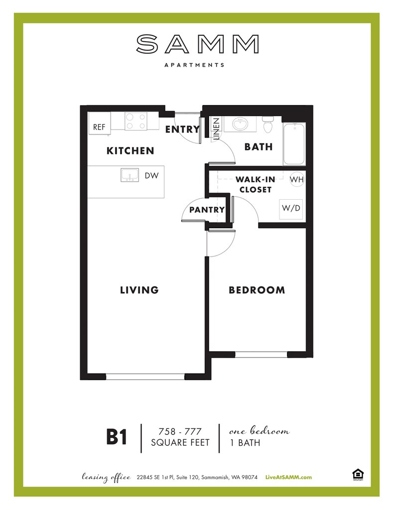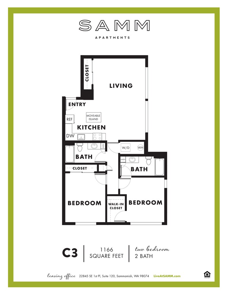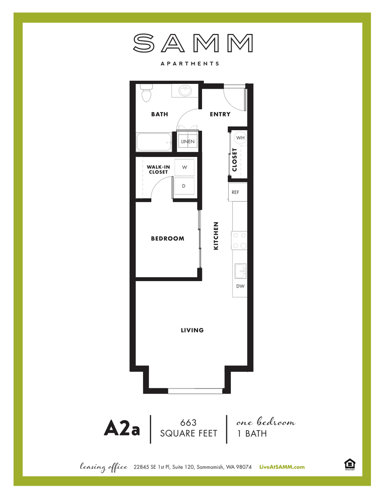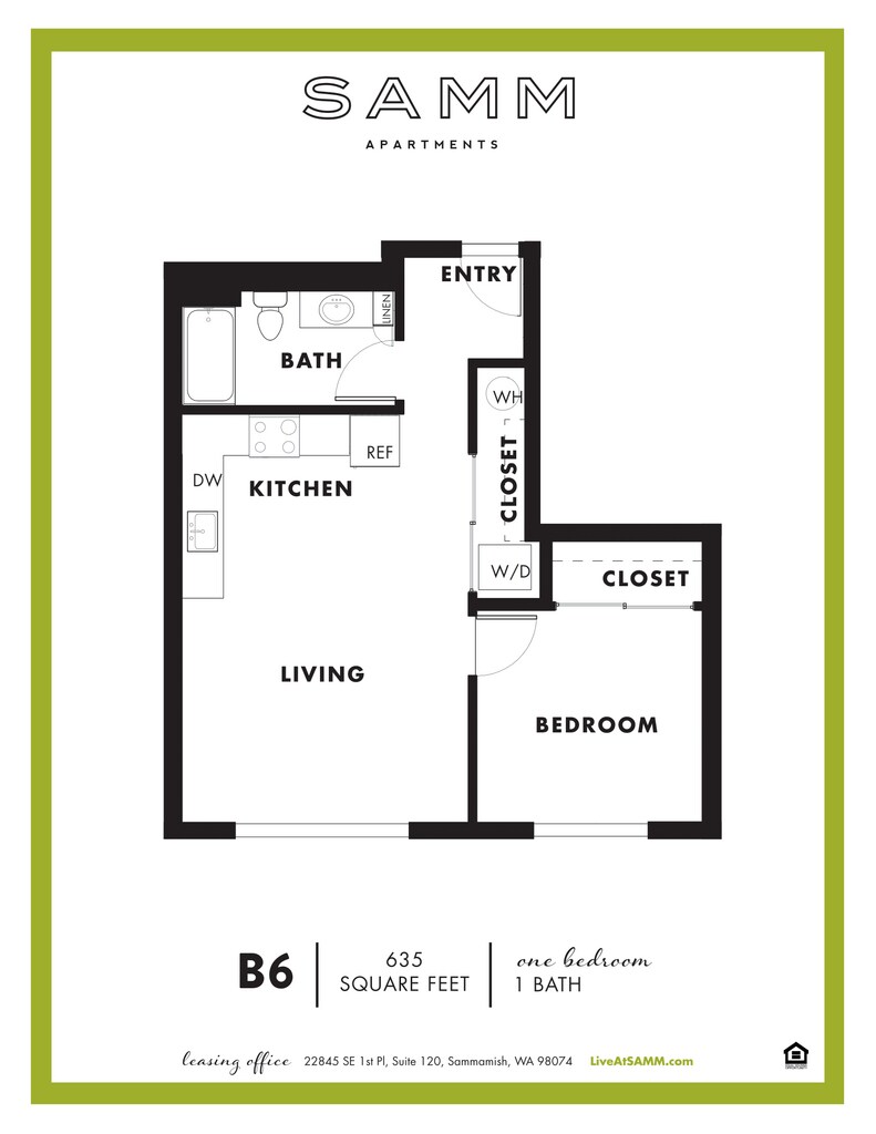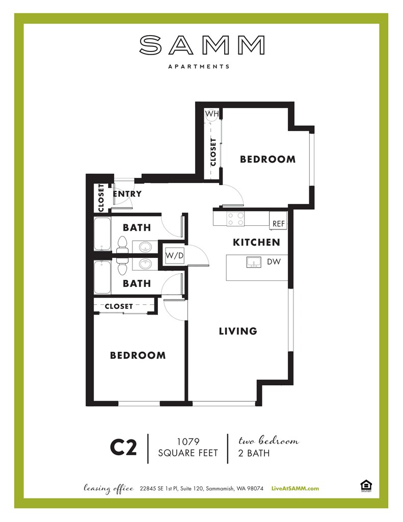 Welcome to SAMM Apartments, where residents can truly live! We offer brand-new, spacious studio, one, and two-bedroom apartment homes, located across the street from The Village at the Sammamish Town Center! Inside youll find luxurious features like open floor plans, quartz countertops, spacious closets, dens, lofts and so much more. Residents can work or lounge in the large amenity areas, play a game of ping pong on the patio with friends, get active in the fitness center, or take in the sunset on the rooftop deck around the fireplace. Find the home that fits your lifestyle at SAMM.