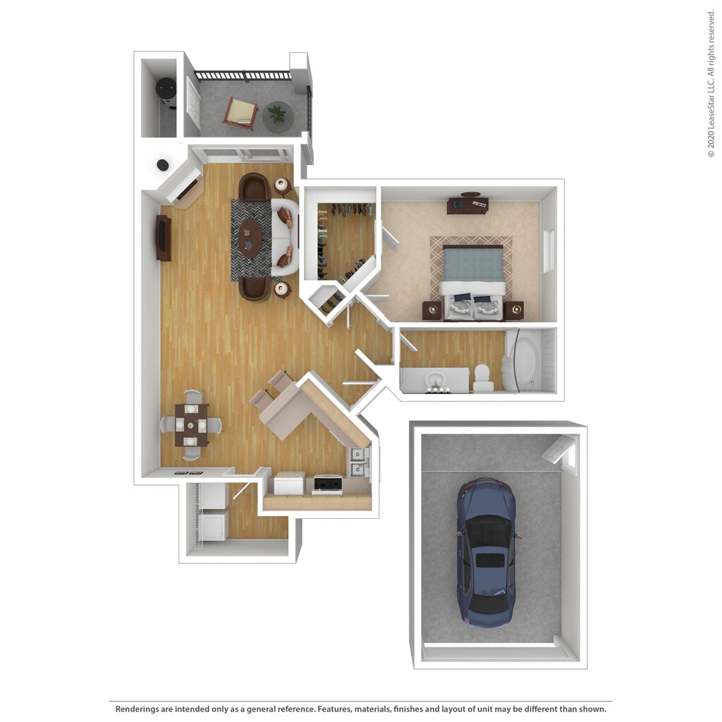 1 Bed 1 Bath 1-car Garage 929 SqFt (845 Net) - Floorplan 2 ![]()