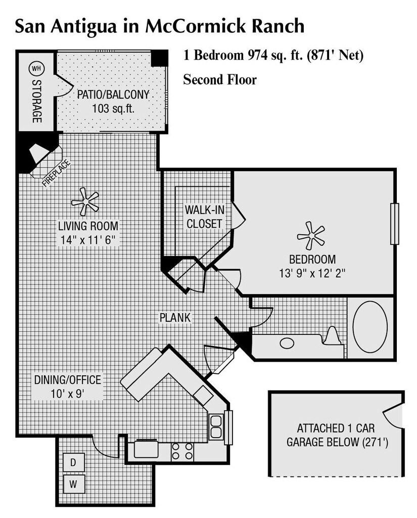 1 Bed 1 Bath 974 SqFt (871 Net) - Floorplan 2 ![]()