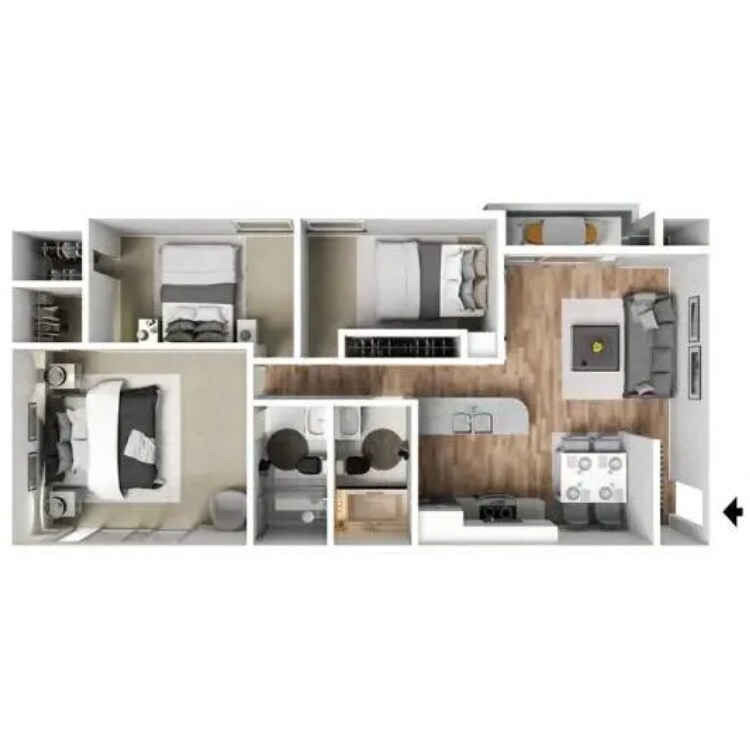 Apartment Model: Santa FeCall For Rates3 Bedroom, 2 Bath, 1034-1263 sq ftUnavailableSanta Fe - Floorplan 1