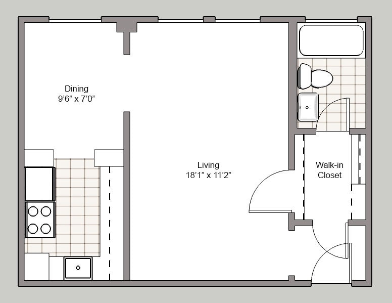 Studio ('11s) - Image 10 Apartment Unit: 211Apartment Model: Studio ('11s)Studio, 1 Bath, 430 sq ftAvailable Now1 Bedroom