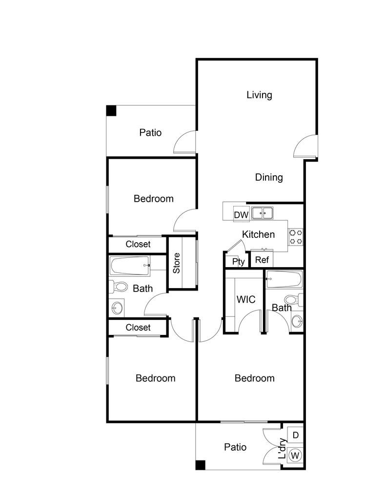 Apartment Model: B1 MKT$1,6502 Bedroom, 2 Bath, 1004 sq ftAvailable Now![]()