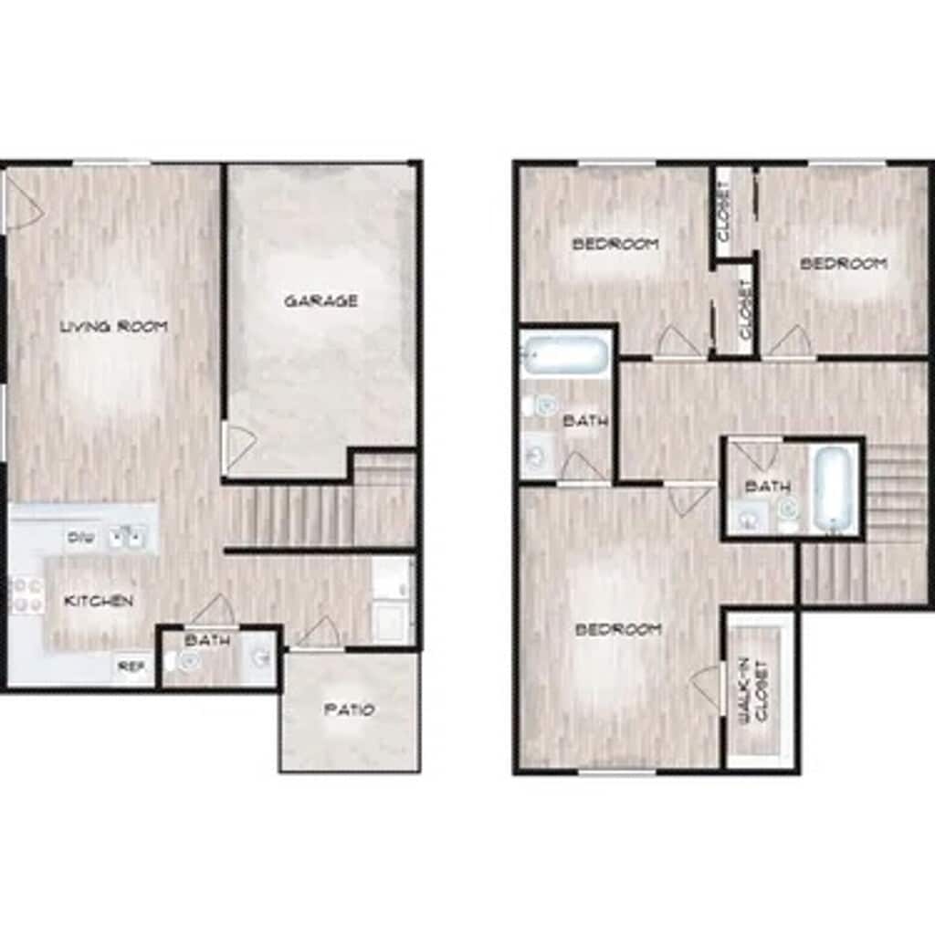 3 Beds, 2.5 Baths, 1276 sq ftAvailable NowCheapest 3 BedroomThis is the cheapest 3 Bedroom at this PropertyModel Gallery