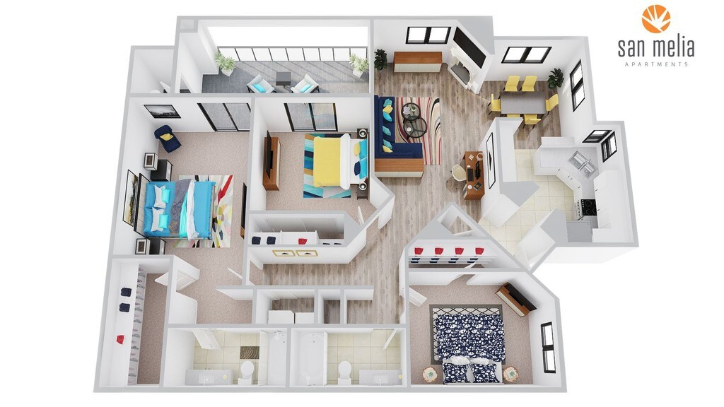 Welcome to San Melia Apartments offering resort-style living tucked into the Ahwatukee Foothills of Phoenix. Our remarkable pet-friendly community boasts one, two, and three-bedroom apartment homes with five striking floorplans.