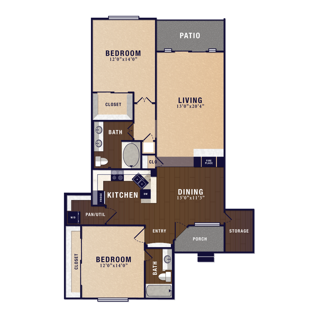 2 Beds, 2 Baths, 1219 sq ftAvailable NowCheapest 2 BedroomThis is the cheapest 2 Bedroom at this PropertyModel Gallery