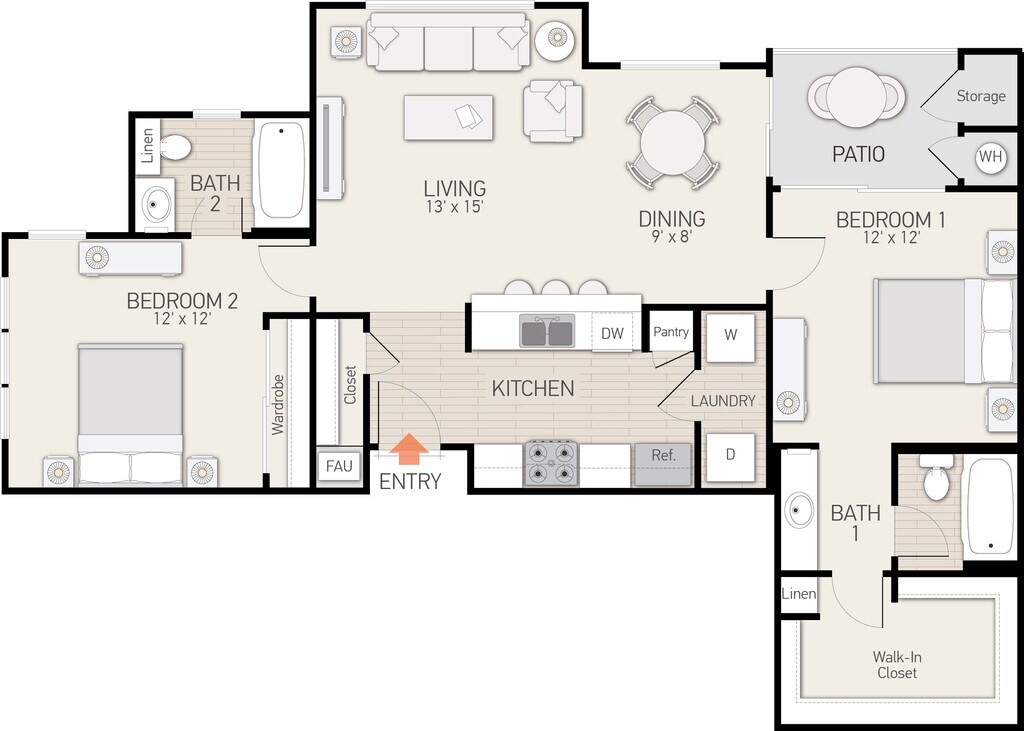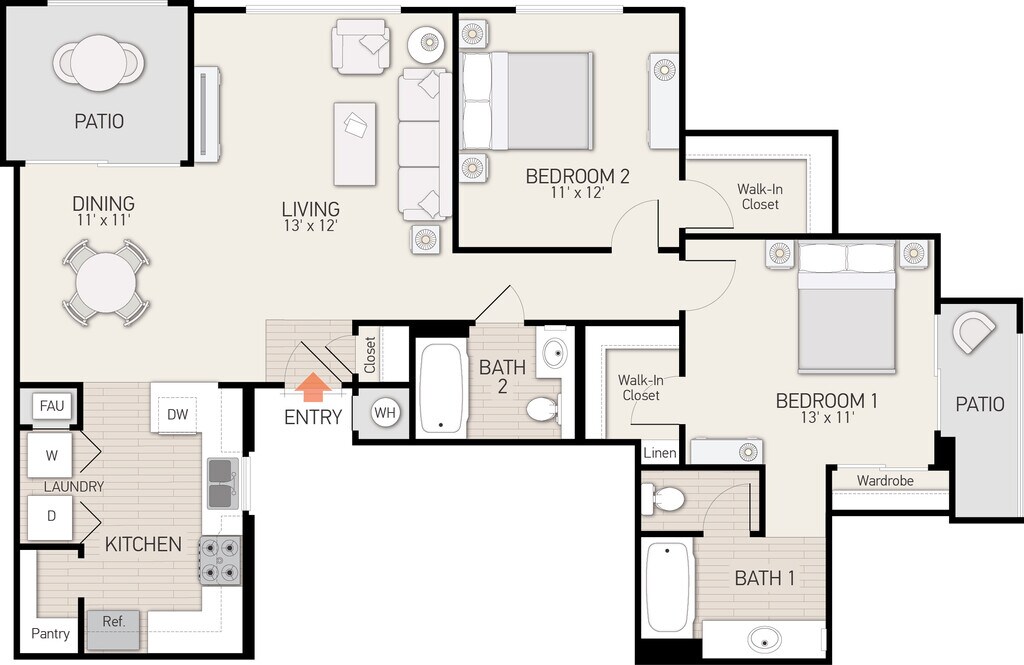 2 Beds, 2 Baths, 1102 sq ftAvailable NowModel Gallery