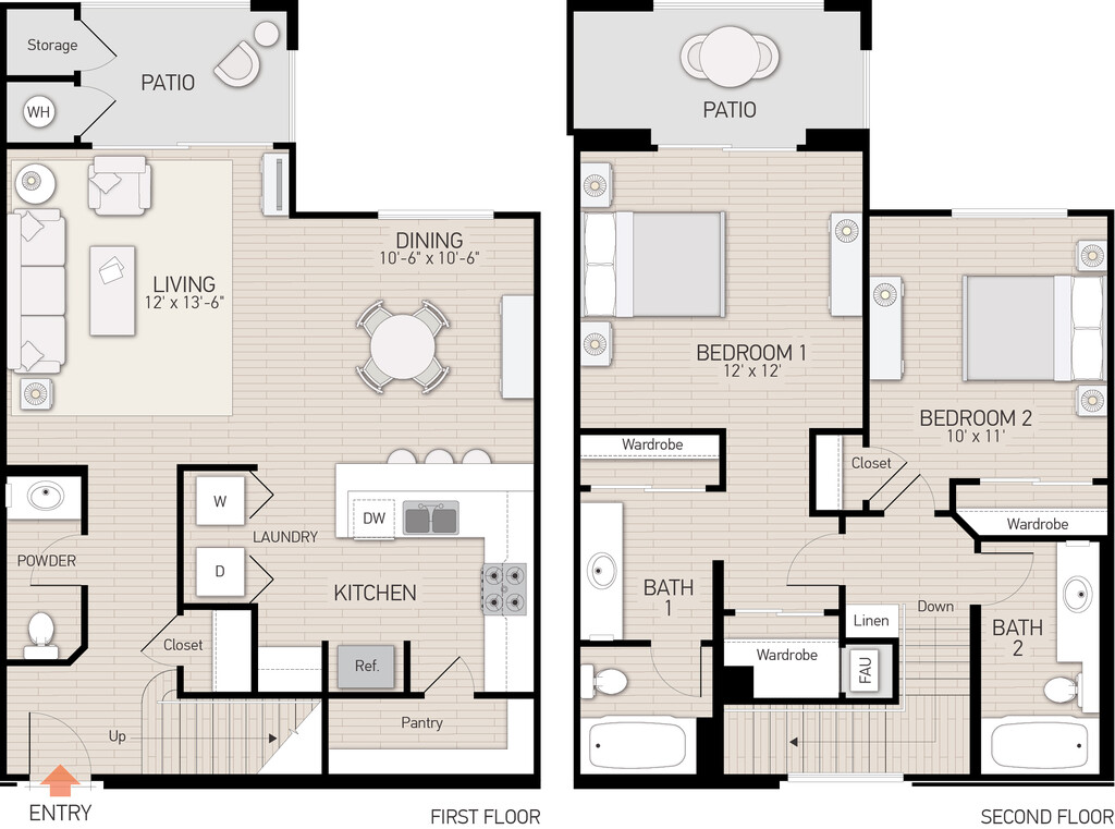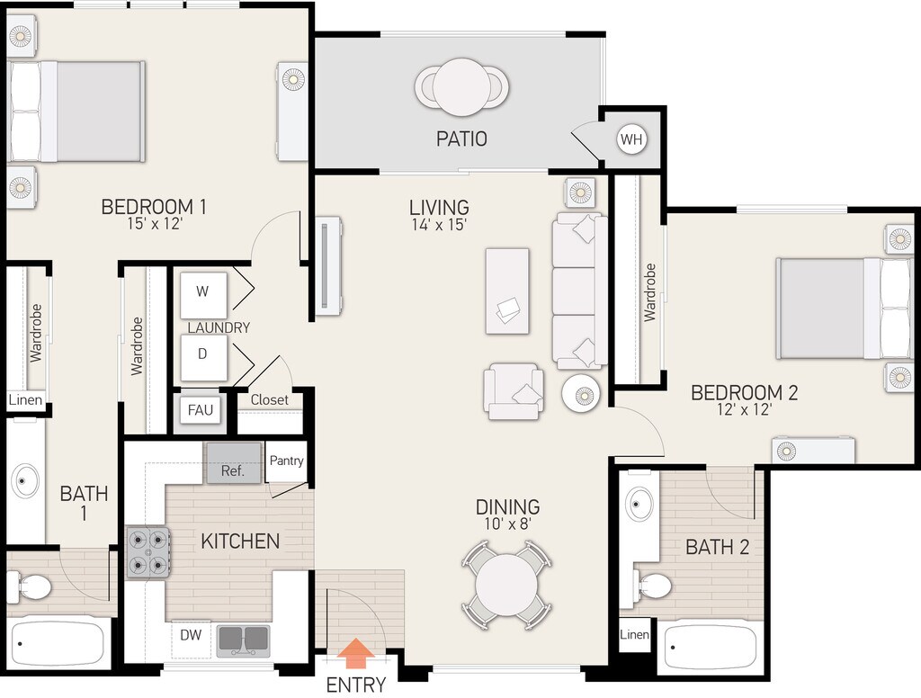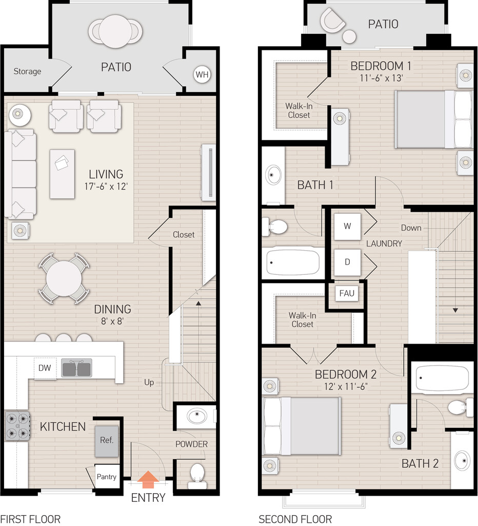2 Beds, 2 Baths, 1155 sq ftAvailable NowModel Gallery