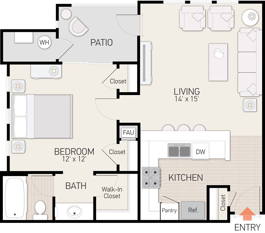 Plan B - Floorplan 1 Apartment Unit: 187Apartment Model: Plan BFrom $2,7751 Bedroom, 1 Bath, 731 sq ftAvailable NowPlan A