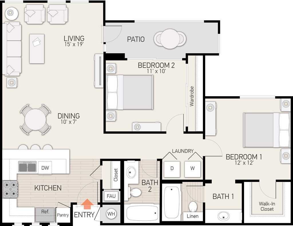2 Beds, 2 Baths, 1081 sq ftAvailable NowCheapest 2 BedroomThis is the cheapest 2 Bedroom at this PropertyModel Gallery