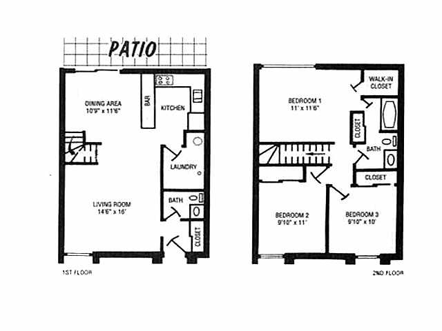 Apartment Model: 3 Bed 1.5 Bath TownhomeCall For Rates3 Bedroom, 1.5 Bath, 1100 sq ftUnavailableFloorplansPhotos![]()