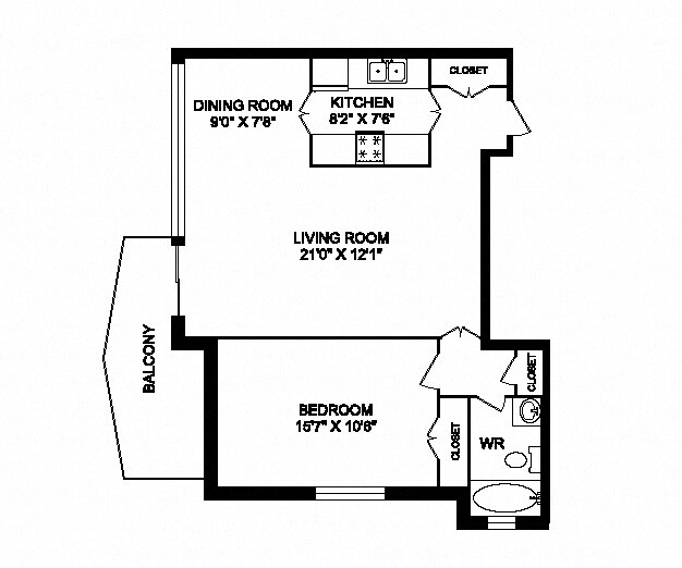 1 Bed 1 Bath Monaco C - Floorplan 1 1 Bed 1 Bath Monaco H