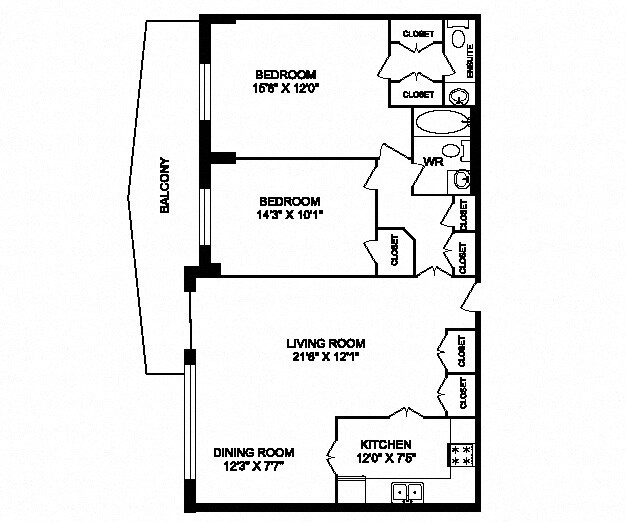 1 Bed 1 Bath Monaco H - Floorplan 1 2 Bedrooms