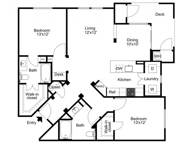 2 Beds, 2 Baths, 1216 sq ftAvailable NowLargest 2 BedroomThis is the largest 2 Bedroom at this PropertyModel Gallery