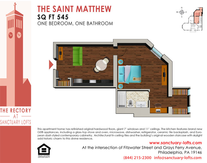 Sanctuary Lofts, originally the Greater Saint Matthew Baptist Church, was built in 1891. Transformed into studios and one to three bedroom, one to two bathroom apartments in 2014, the building has retained many of the unique architectural features of the former church including intricate carvings and arched doorways. Apartment Features: • Washer/dryer in apartment • Individually controlled heat and air • Hardwood floors • Spacious closets • Pet-friendly (cats and small dogs) Kitchen Features: • Stainless-steel appliances • Glass-top stove/oven • Dishwasher • Microwave • Granite countertops • Sleek, modern cabinets Bathroom Features: • Granite vanities • Under-mount sinks Community Amenities: • Bike storage • Access to public transportation Sanctuary Lofts is located just minutes away from Septa bus and train lines, the UPenn shuttle, and 1-76. A variety of highly-rated local restaurants, shops, bars, and grocery stores are also within walking distance. Security deposit, first, and last month's rent are due at lease signing. If you would like to reserve an apartment or schedule a showing, please email us at: info@sanctuary-lofts.com.
