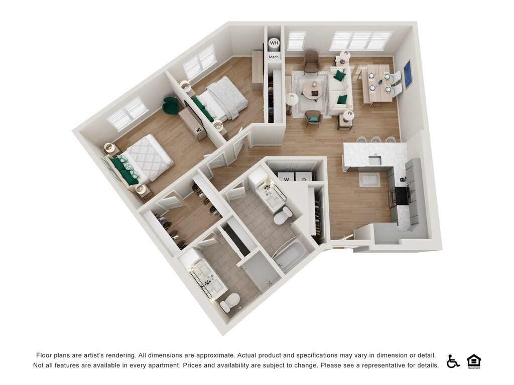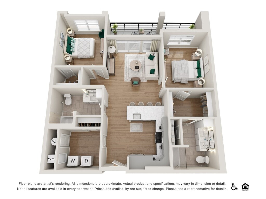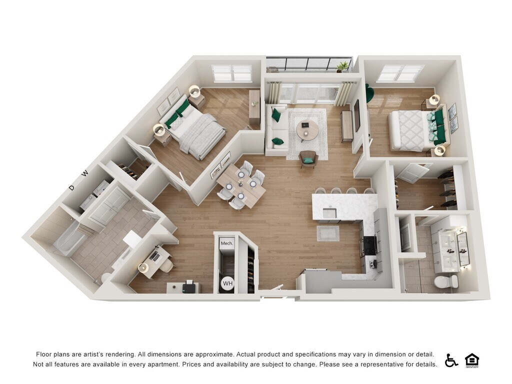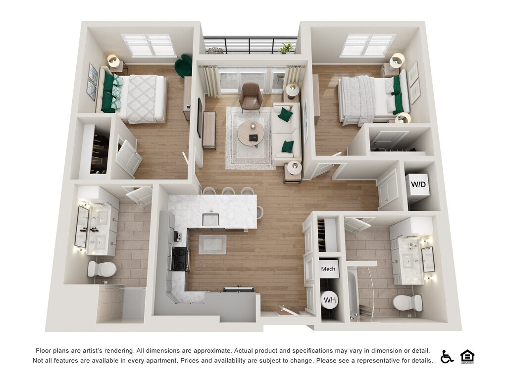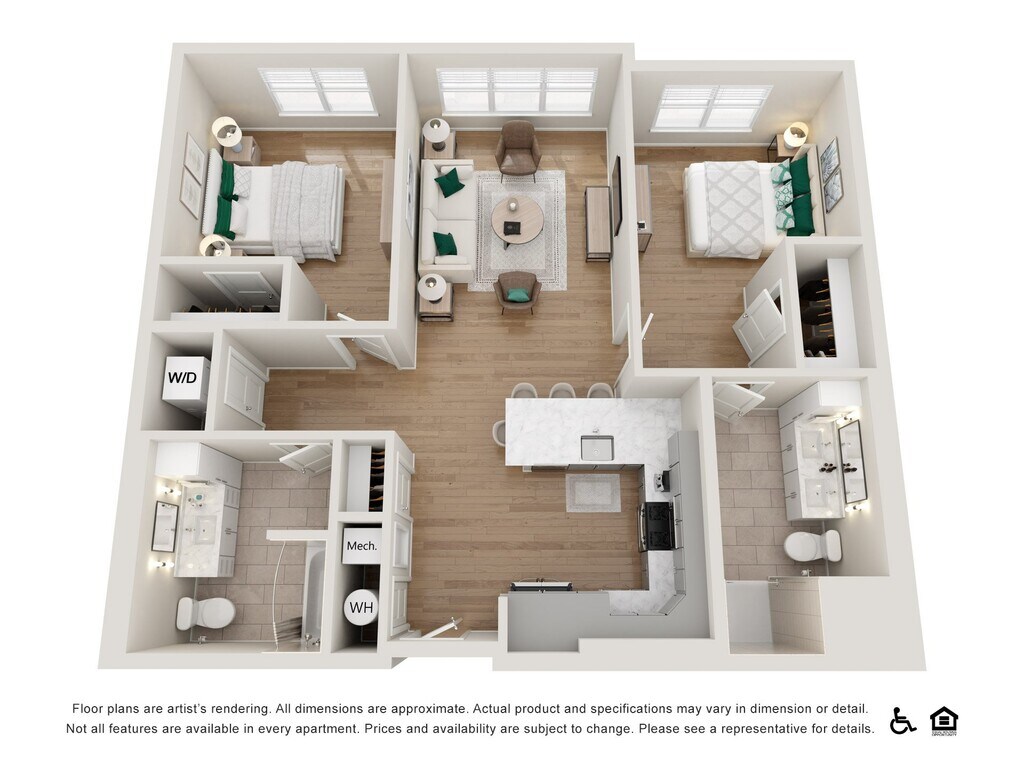2 Beds, 2 Baths, 1260 sq ftPlus FeesAvailable NowModel Gallery