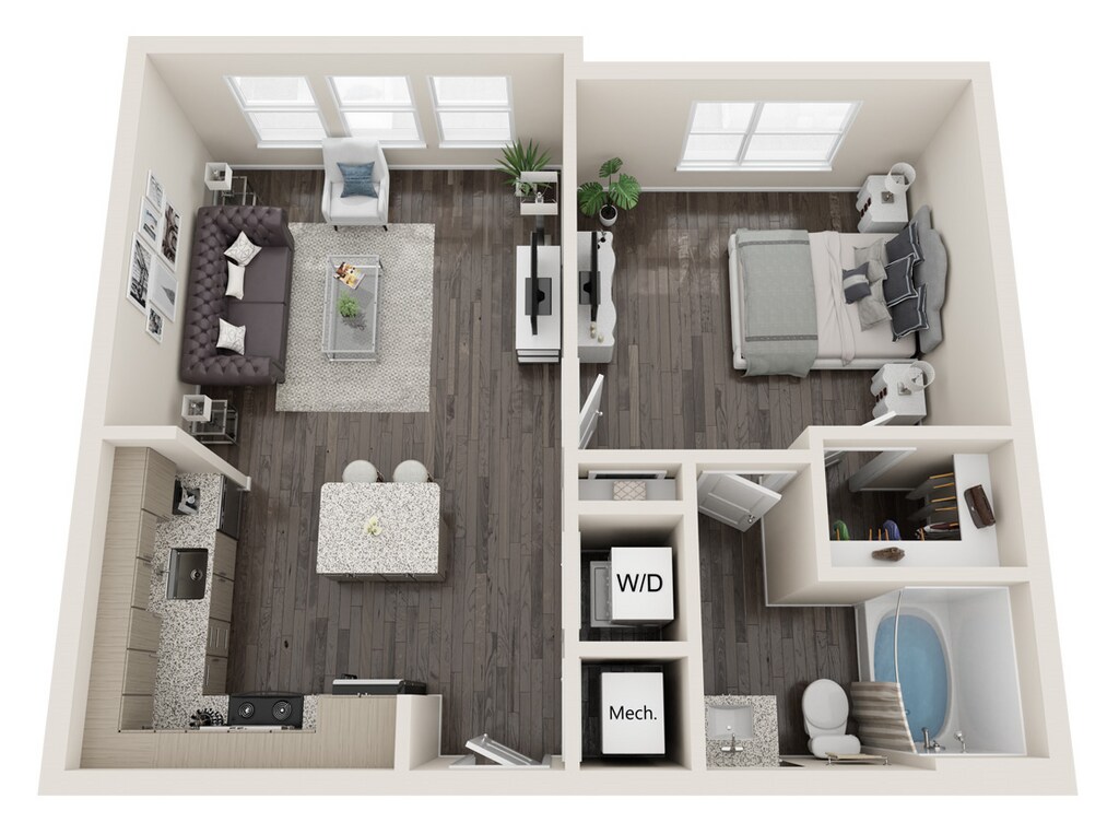 Apartment Model: Hummingbird$1,6151 Bedroom, 1 Bath, 678 sq ftUnavailableFloor plans are artist's rendering. All dimensions are approximate. Actual product and specifications may vary in dimension or detail. Not all features are available in every rental home. Prices and availability are subject to change. Base rent is based on monthly frequency. Additional fees may apply, such as but not limited to package delivery, trash, water, amenities, etc. Deposits vary. Please see a representative for details.