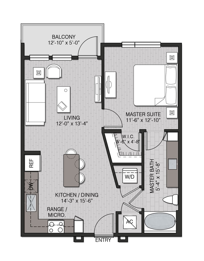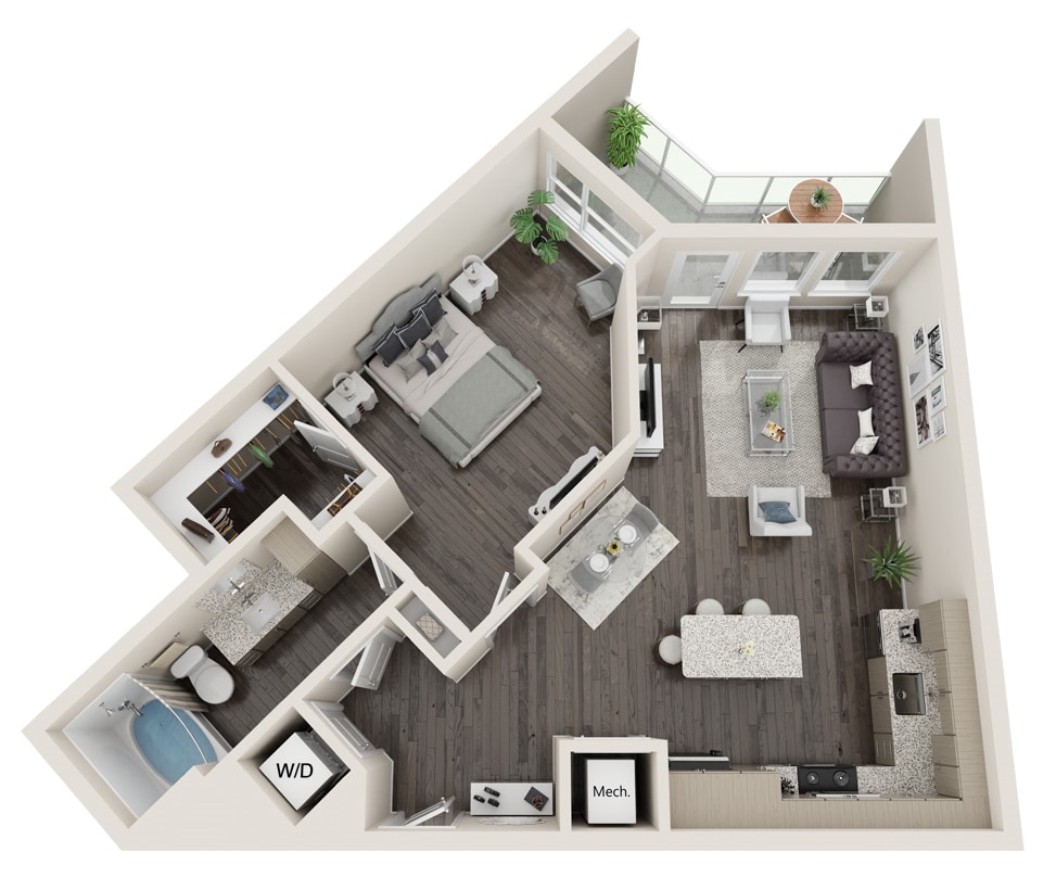 1 Bed, 1 Bath, 678 sq ftModel Gallery