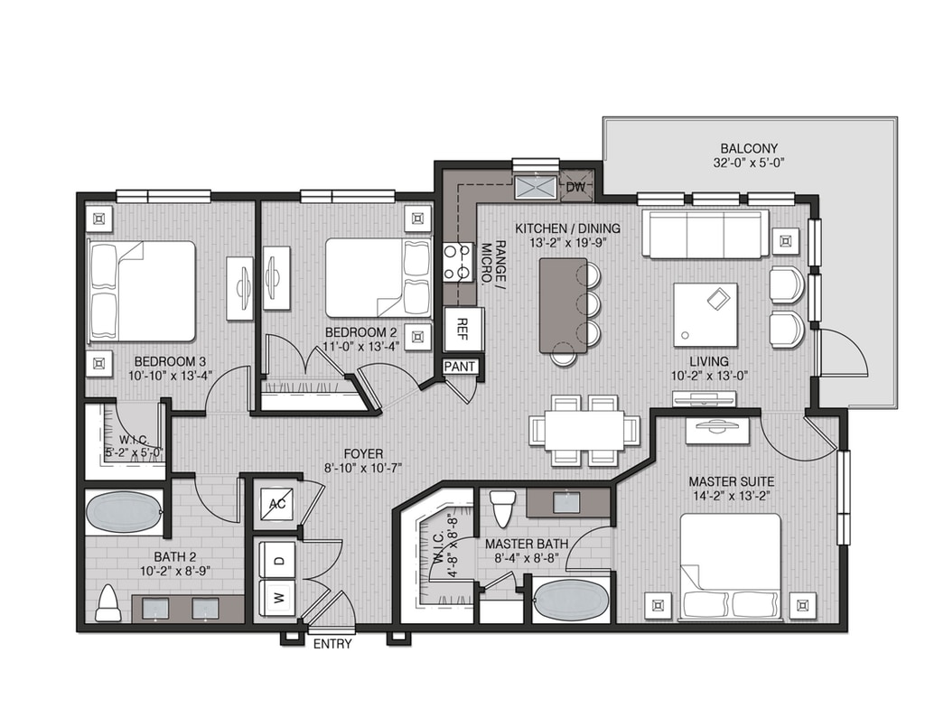 1 Bed, 1 Bath, 817 sq ftAvailable NowLargest 1 BedroomThis is the largest 1 Bedroom at this PropertyModel Gallery