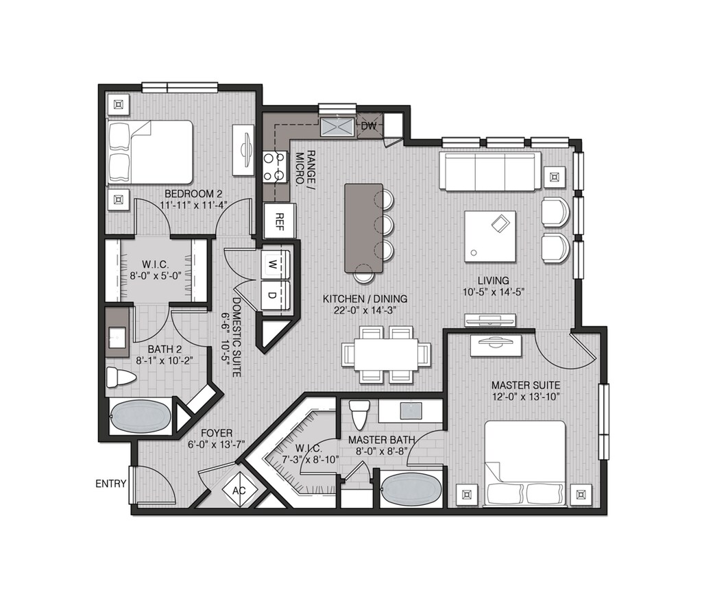 2 Beds, 2 Baths, 1074 sq ftAvailable NowCheapest 2 BedroomThis is the cheapest 2 Bedroom at this PropertyModel Gallery